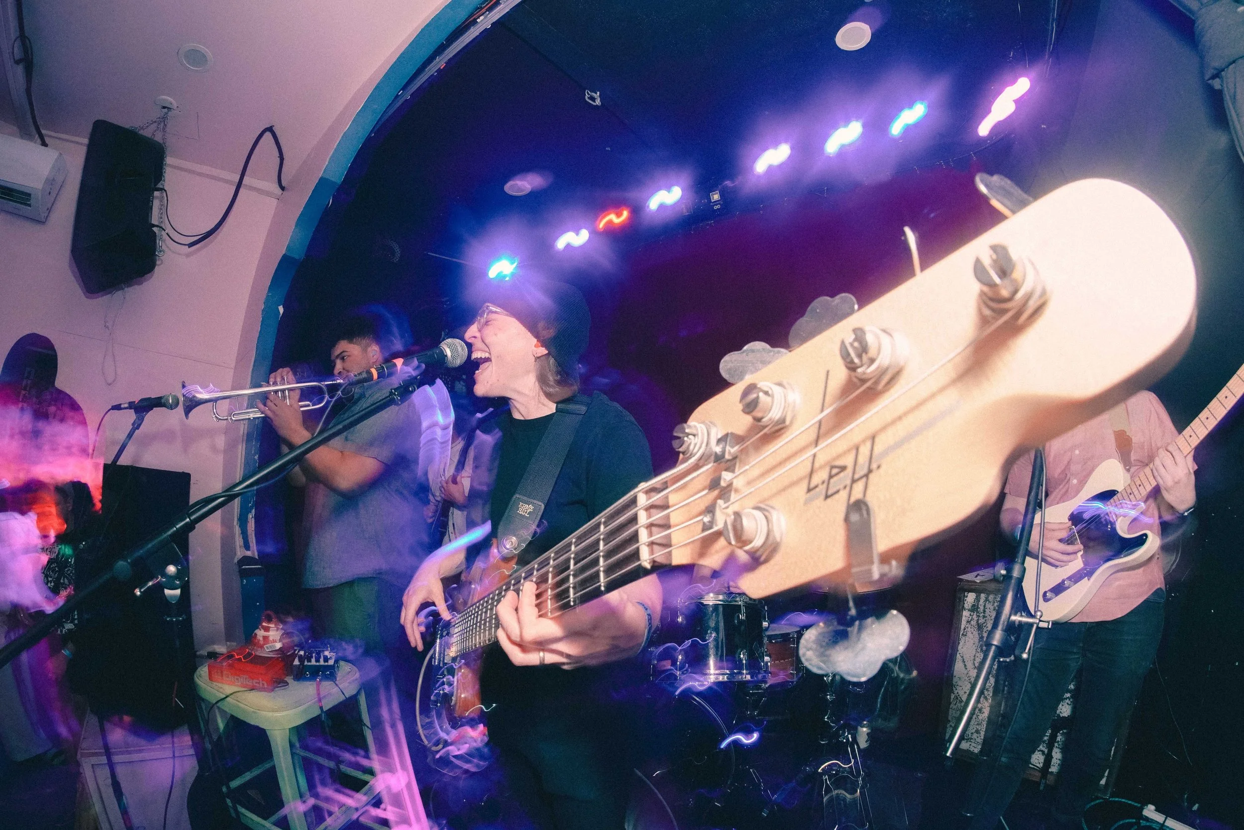 It definitely doesn’t come naturally to me. I say this with no false modesty, but very few things come naturally to me. I’ve had a lot of advantages coming from a musical family and getting music lesson early, but I’ve never been a natural at anything. I’m more of an obsessive. Singing on its own is very difficult and I was not confident about it when I started, and I’m still working on it. It’s very vulnerable. I worked with playing and singing for a while and it’s something I work on every time I write a new song. If you’re playing root notes, that’s one thing, but anything else requires coordination like how a drummer divides their limbs. I do a lot of very slow practice to get the rhythm of the vocal over the bass line and trying to get a feel for memorizing the pitch. It’s a challenge and sometimes it still goes haywire.
